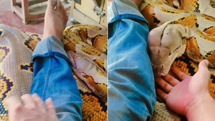 बहुत से लोगों को अपने घरों में पालतू जानवरों को पालने का शौक होता है, कोई अपने लिए क्यूट सा पप्पी पालता है, तो कोई प्यारी सी कैट तो कोई खरगोश या तोता भी पालता है. लेकिन क्या कभी आपने सुना है कि किसी को सांप पालने का शौक है वो भी कोई छोटा-मोटा नहीं सांप नहीं बल्कि सांपों का बाप अजगर. जी, हां एक शख्स ने अजगर को अपना साथी बना लिया है और हमेशा उसके साथ ही रहता है. इस शख्स ने सोशल मीडिया पर कई सारे वीडियोज अपने इस विशालकाय साथी के साथ पोस्ट किए हुए हैं.