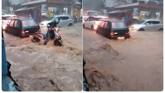 जहां नजर घुमाओ पानी ही पानी दिखाई दे रहा है. मानो जैसे बाढ़ आ गई हो. मानसून आने से पहले अगर गोवा का ये हाल है तो बाद में क्या होगा, ये सोचकर ही गोवा के लोग परेशान हो उठे हैं. राज्य के कई हिस्सों में भीषण बारिश कहर बरसा रही है. नॉर्थ गोवा का मापुसा और मोरमुगाओ में बाढ़ जैसे हालात पैदा हो गए हैं. बारिश से पणजी का भी हाल खराब है. सड़कों पर पानी भर जाने की वजह से वाहन निकल नहीं पा रहे हैं और ट्रैफिक जाम के हालात पैदा हो गए हैं. गोवा से बारिश का एक भयावह वीडियो सामने आया है, जिसमें पानी से भरी सड़क पर एक शख्स अपनी स्कूटी को संभालने की बहुत कोशिश कर रहा है, लेकिन पानी के बहाव के आगे उसकी ड्राइविंग स्किल काम नहीं आई, शख्स स्कूटी समेत पानी में बह जाता है. दूसरे वाहन भी इस दौरान पानी में फंसे दिखाई दे रहे हैं.